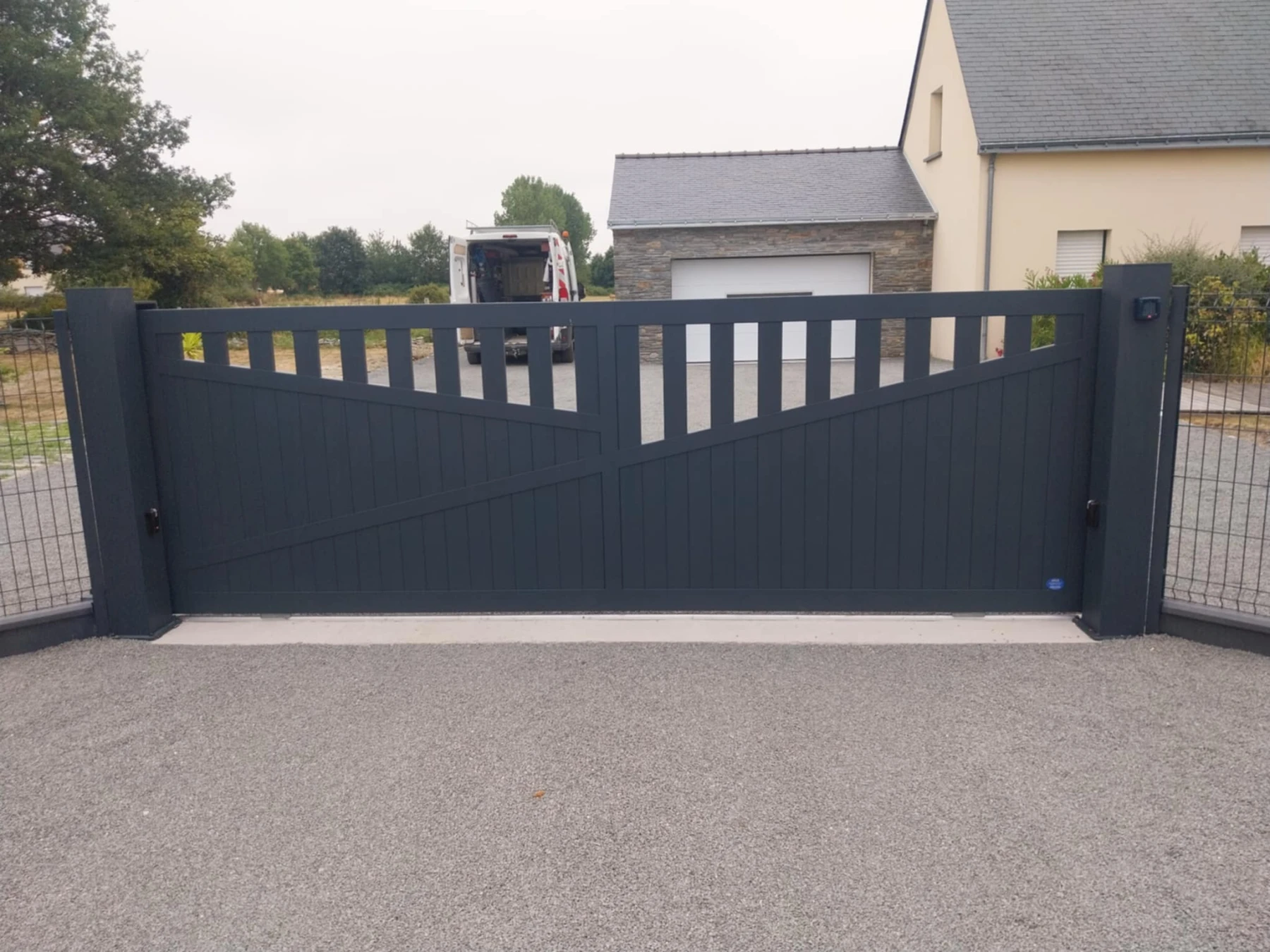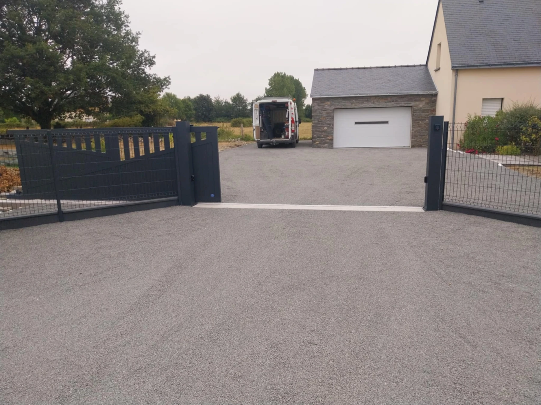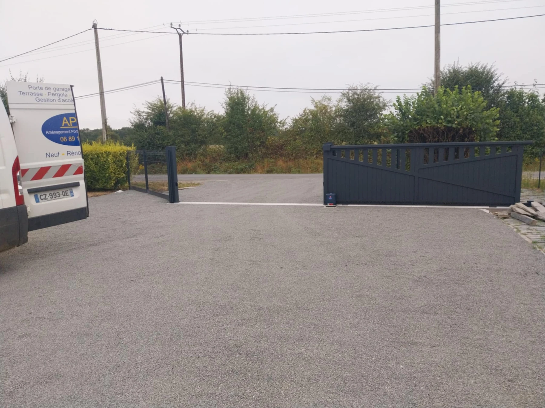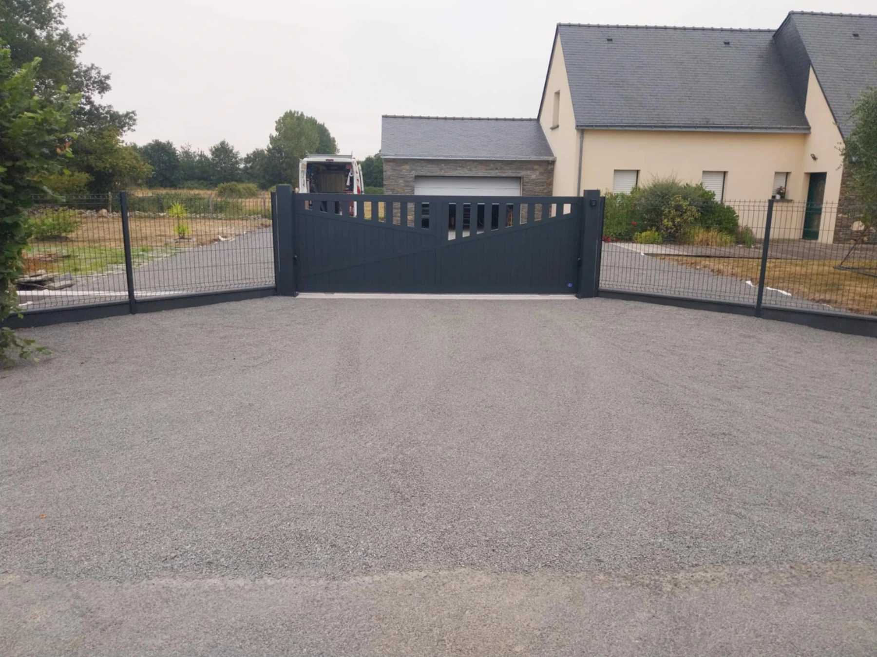 Aménagement d'une cour avec pose d'un portail motorisé. Tréffieux