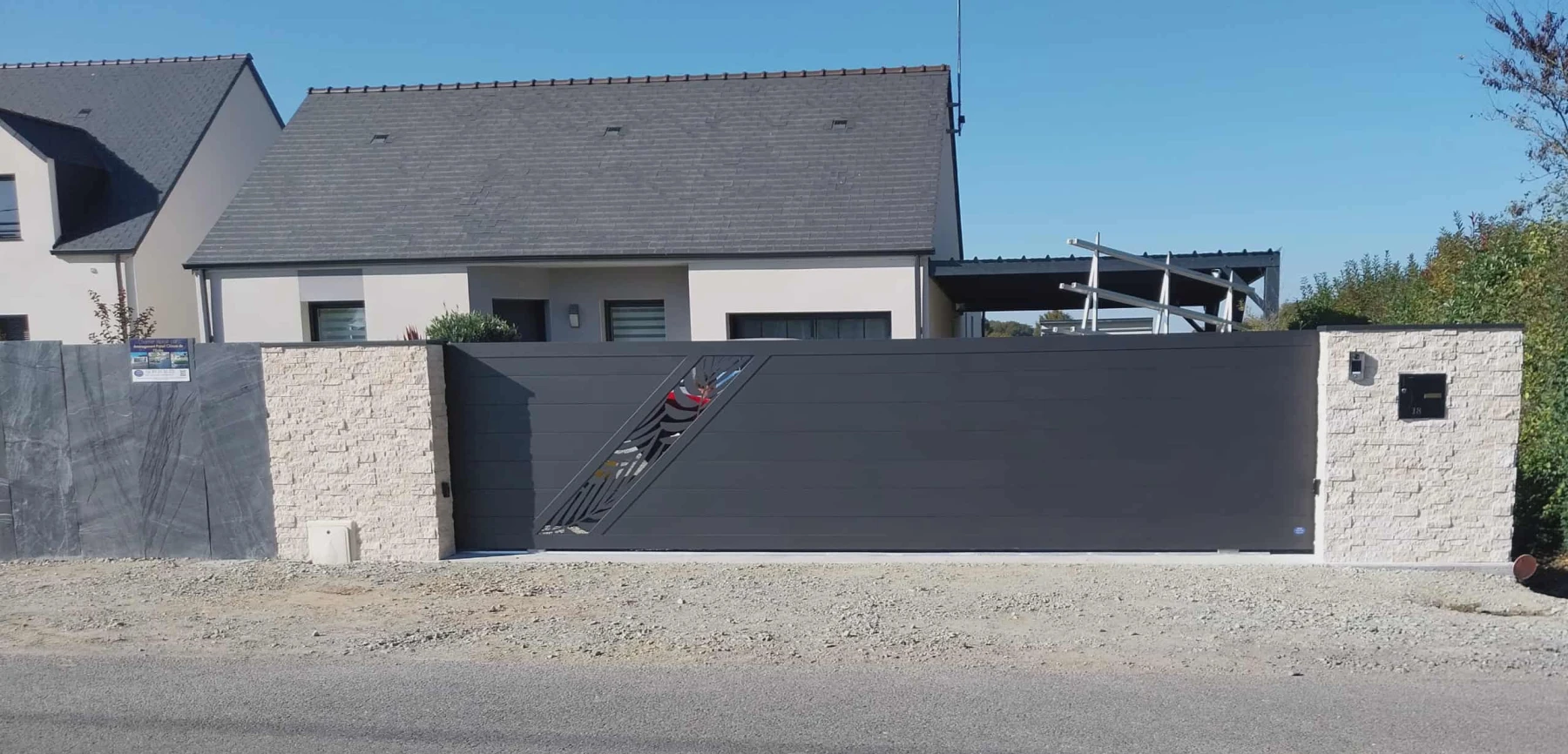 Pose d'un portail coulissant motorisé de 6 m de long par 1m50 de haut. Portail en aluminium avec découpe laser dessiné par les clients. La gestion d'accès est effectué par télécommandes et un visiophone / digicode connecté.