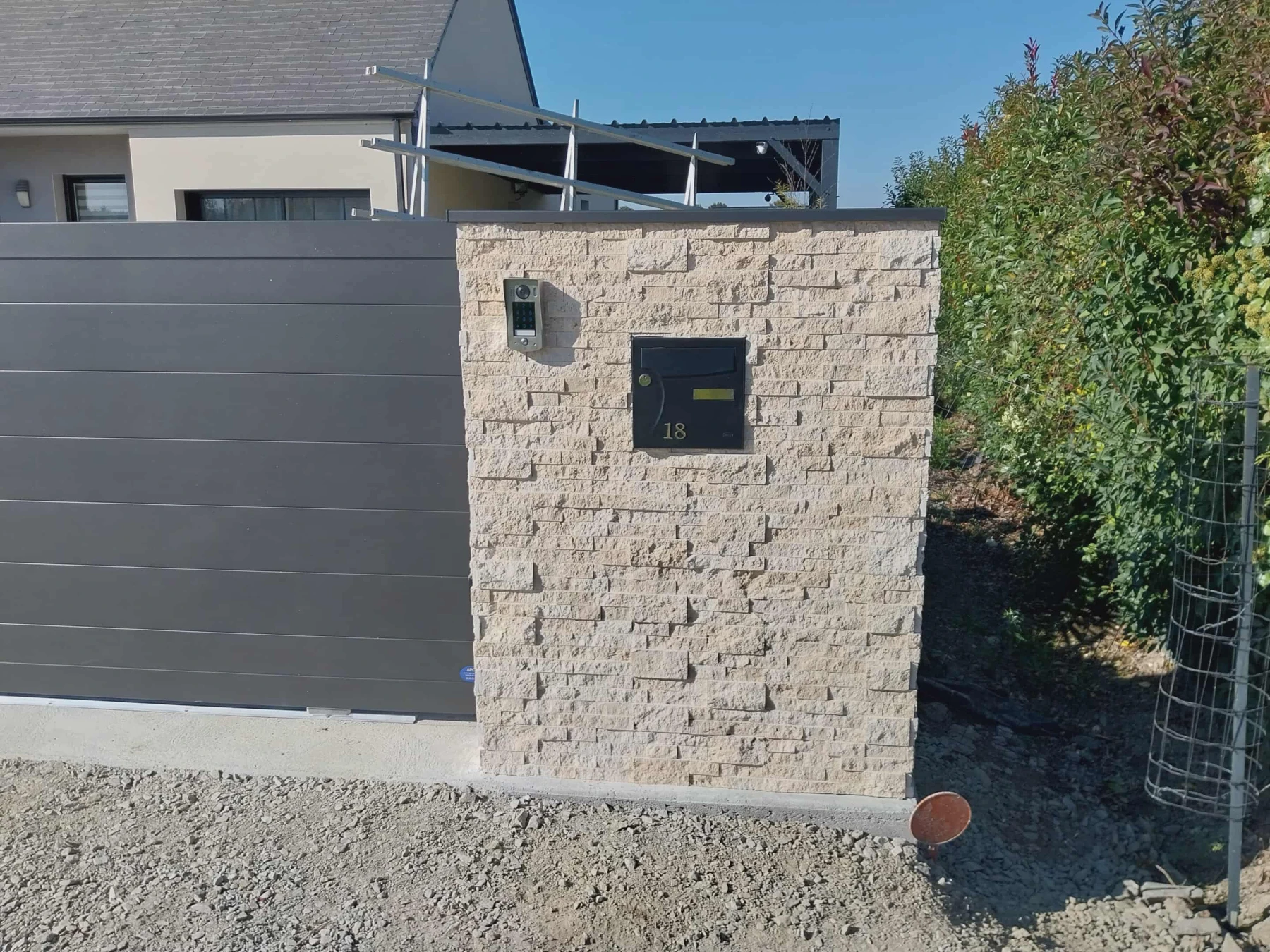 Création d'une longrine béton et de deux murets en parpaings avec passage de gaines pour le portail.