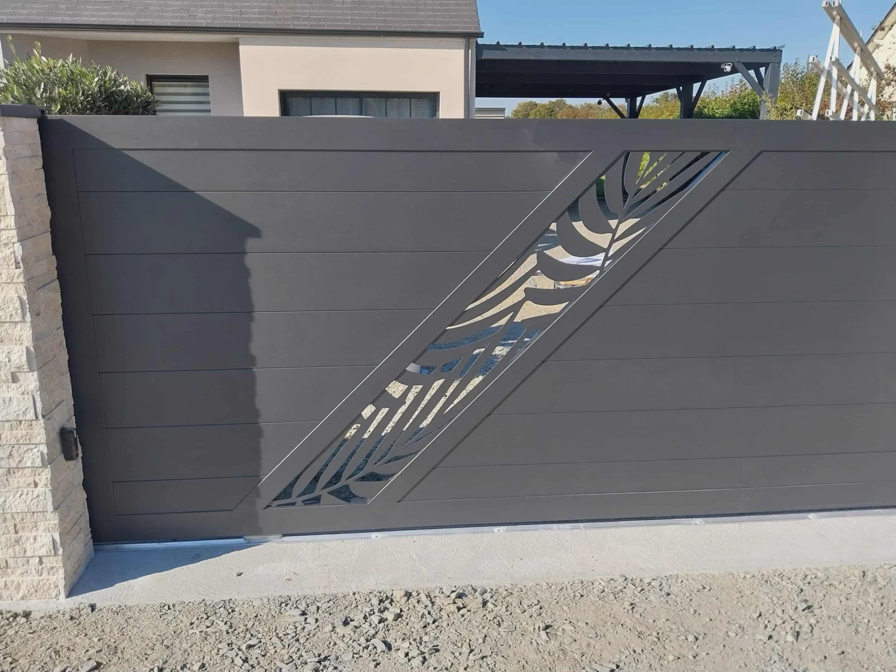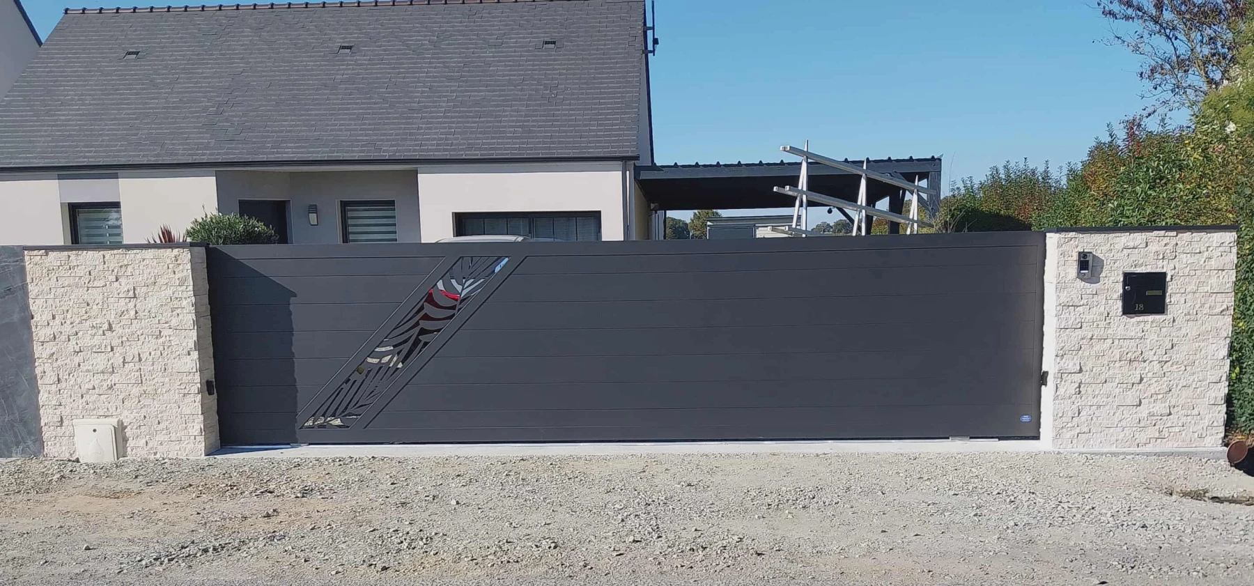 Pose d'un portail coulissant motorisé de 6 m de long par 1m50 de haut. Portail en aluminium avec découpe laser dessiné par les clients. La gestion d'accès est effectué par télécommandes et un visiophone / digicode connecté.