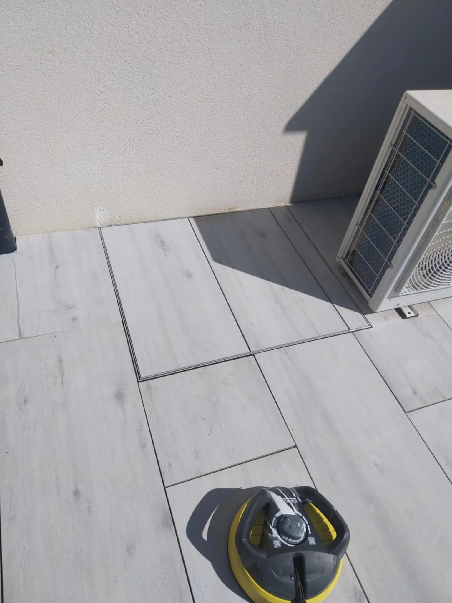 Aménagement d'une trappe du même style que la terrasse pour un accès facile au vide sanitaire de la maison.